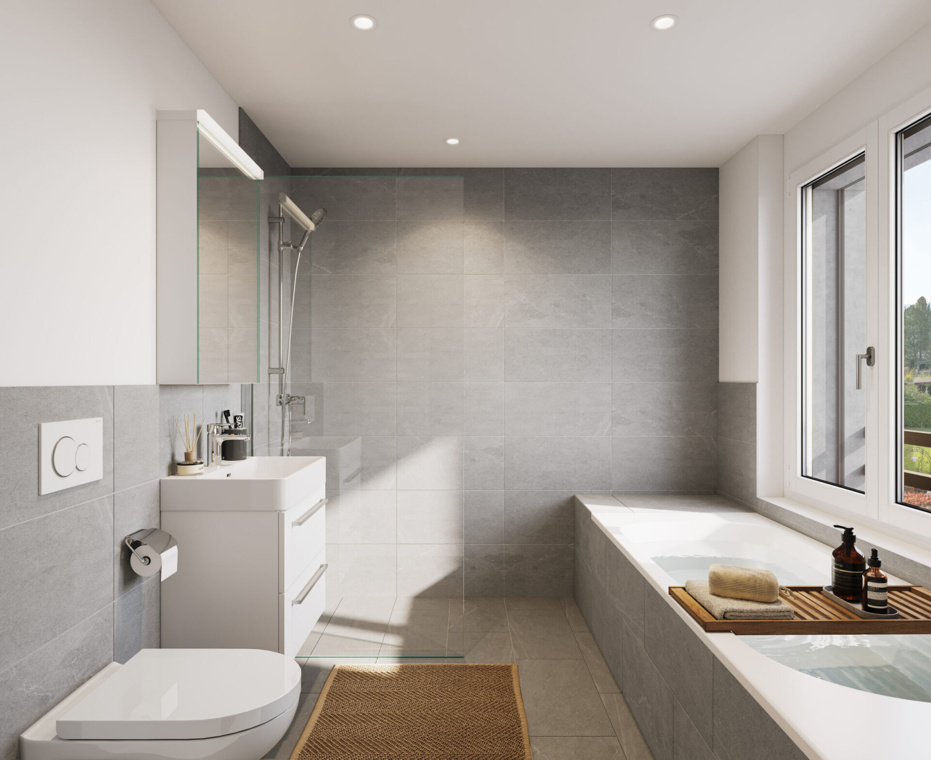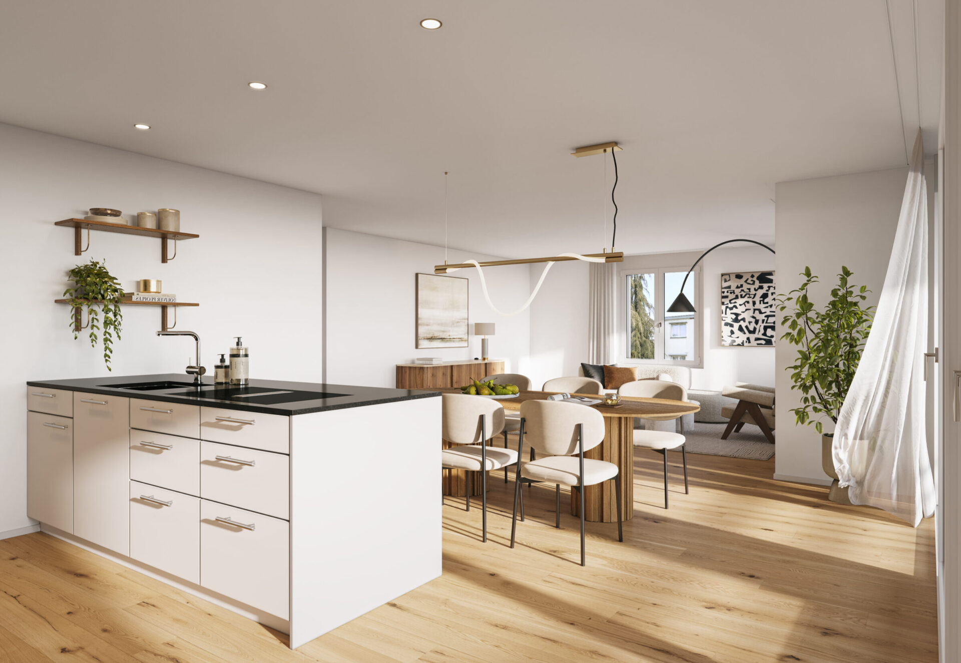 Grosszügige Fensterflächen lassen viel Tageslicht in die Wohnräume strömen und schaffen eine helle, einladende Atmosphäre. Die klar strukturierten Grundrisse sind auf Alltagstauglichkeit und Wohnqualität ausgelegt – funktional und stilvoll zugleich. Jede Wohnung verfügt über einen Balkon oder Sitzplatz, der zum Verweilen im Freien einlädt und den Wohnraum ideal ergänzt. Hier geniessen Sie sonnige Stunden, frische Luft – und das gute Gefühl, angekommen zu sein.