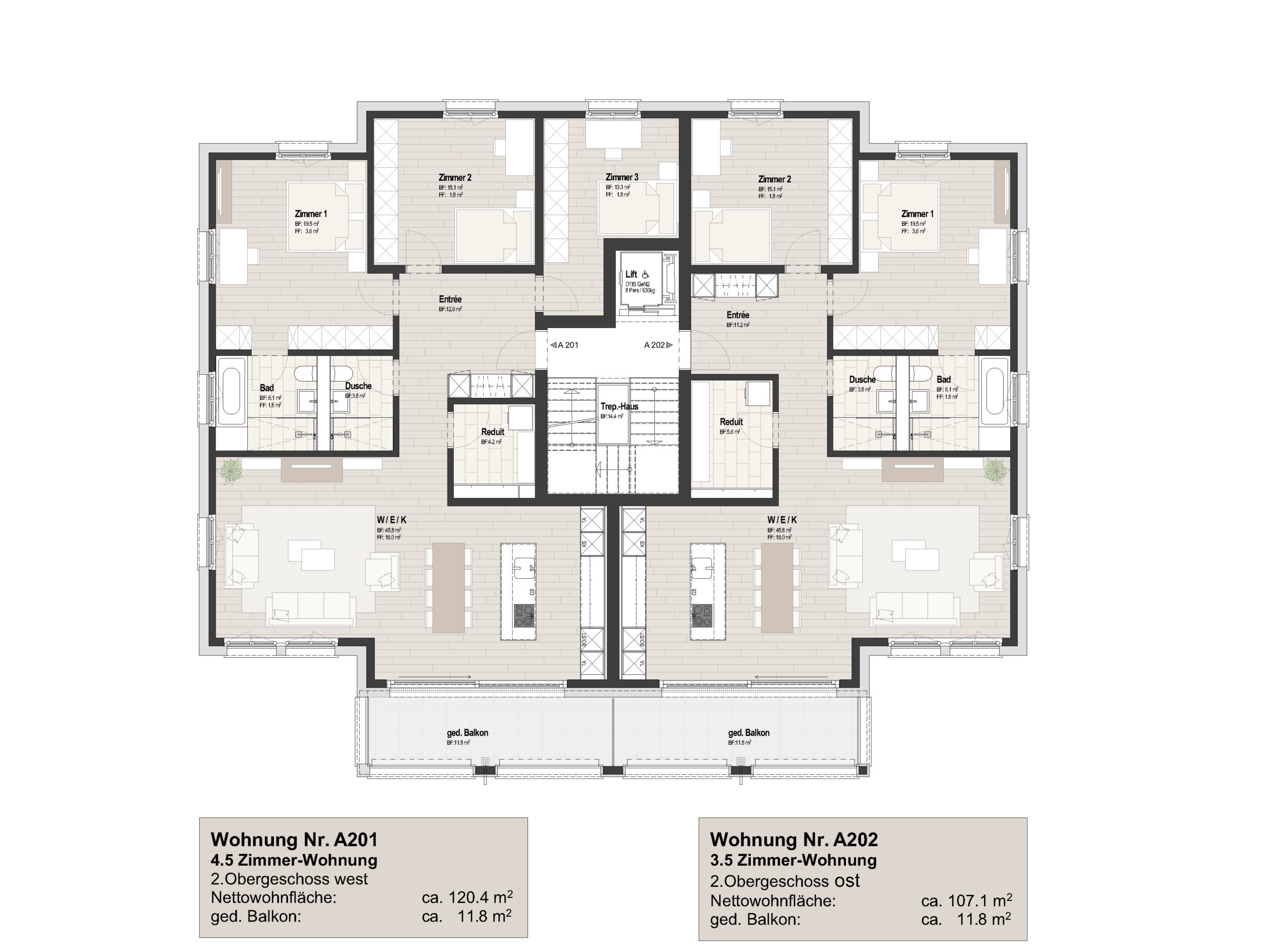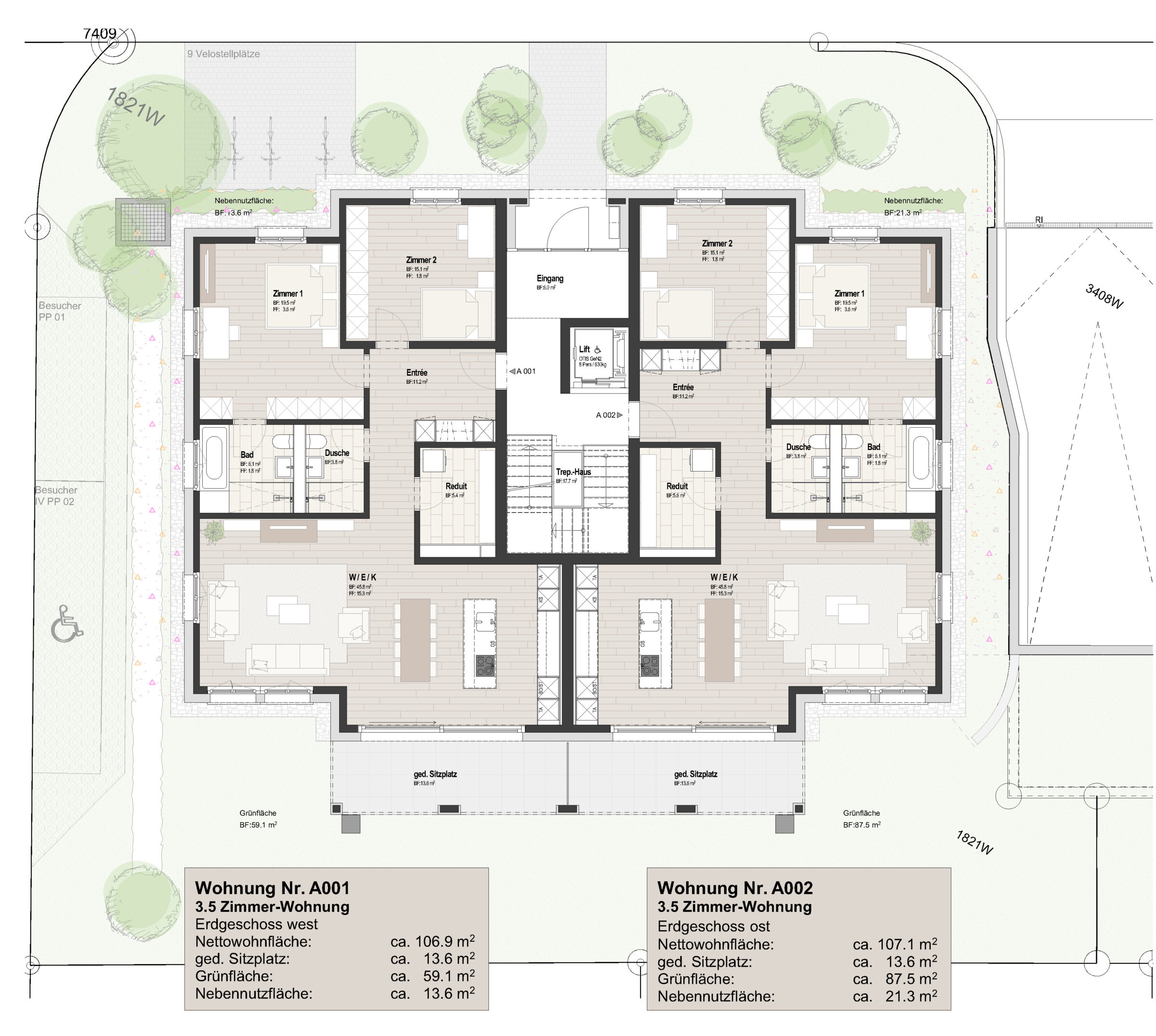 | 2. OG | 3.5 Zi-Wohnung | 107 | reserviert | ||