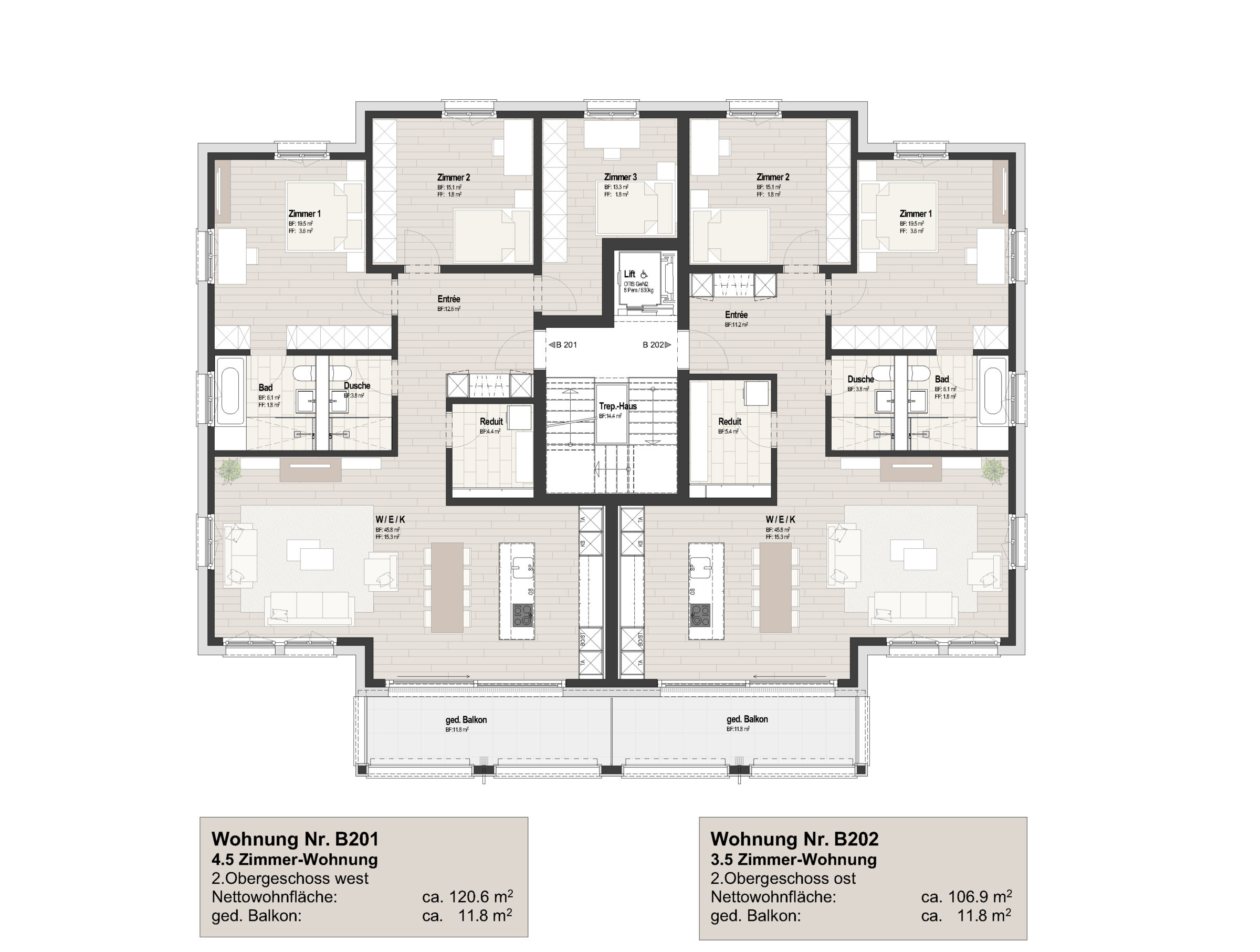 | 2. OG | 4.5 Zi-Wohnung | 121 | reserviert | ||