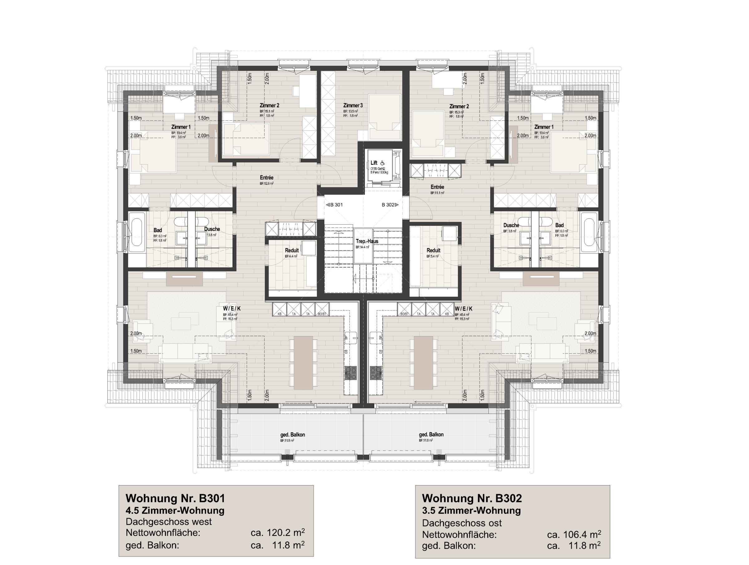 | DG | 3.5 Zi-Wohnung | 106 | reserviert | ||